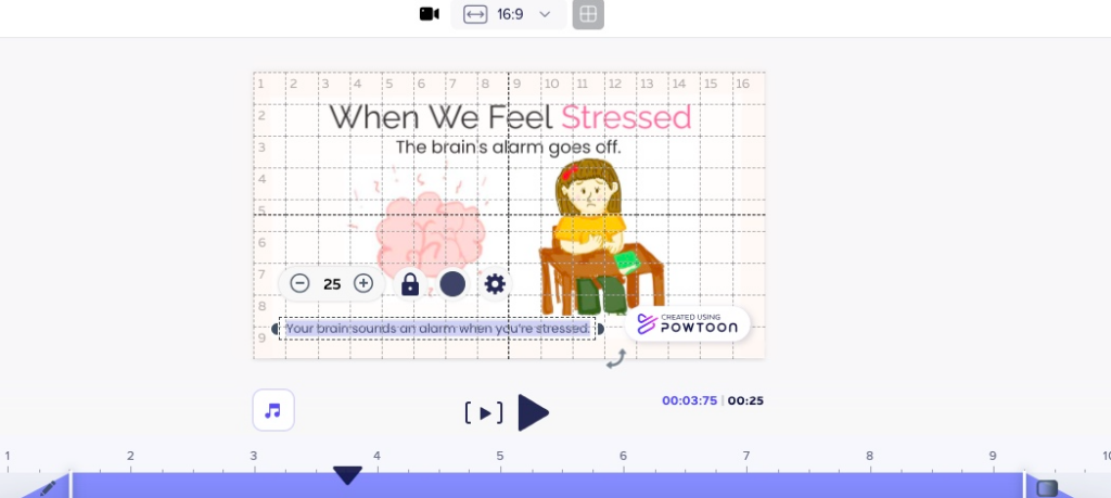 Design in progress: building my mindfulness video in Powtoon — where visuals, narration, and timing come together through design and reflection.